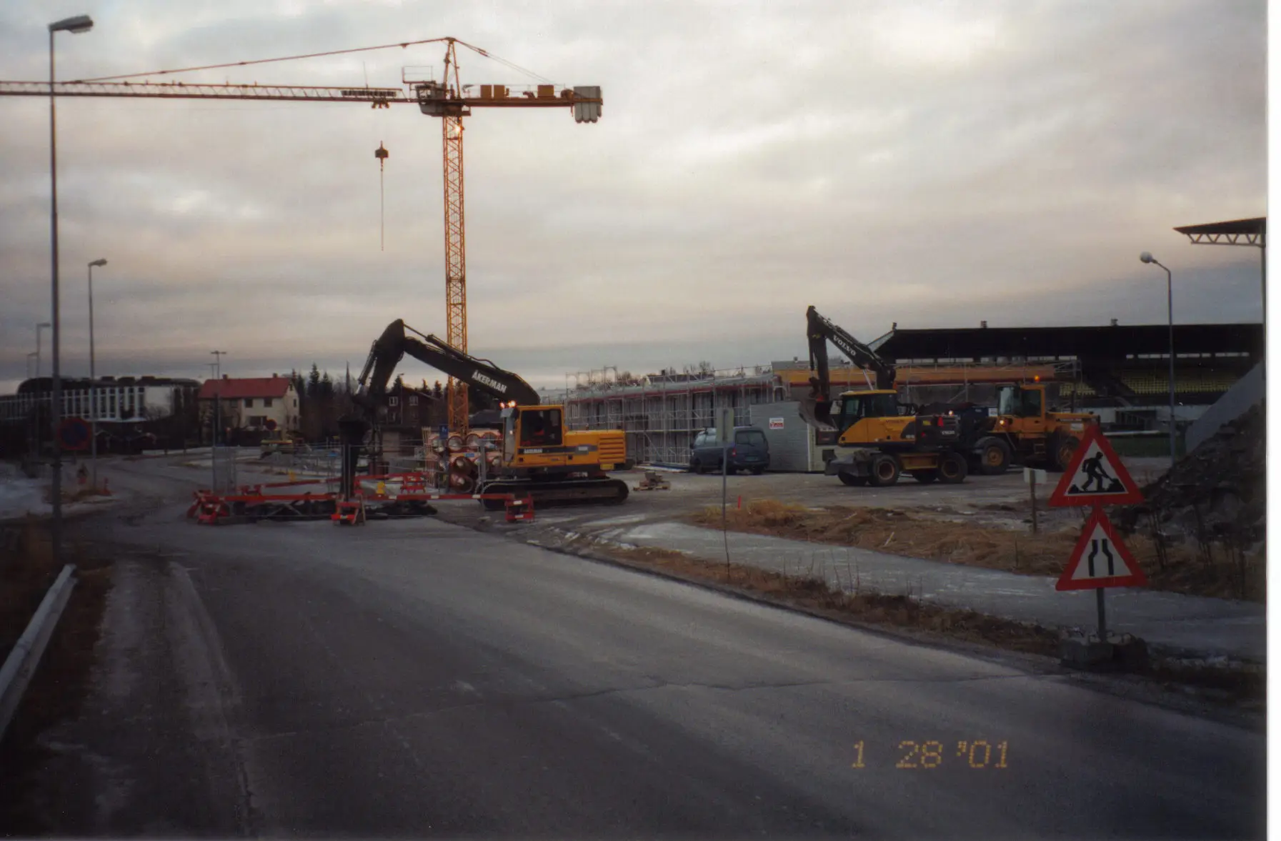 Utbygging av nye tribuner og bygg, samt boligfelt øst for Aspmyra stadion. (1999). Også tilbake i 2024 og gravde grøfter for nytt vanningssystem.